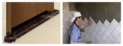 ● 過門石安裝標準:門套必須落在過門石上面,不得直接落地防止受潮;