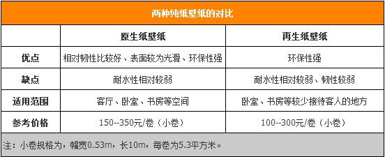 純紙壁紙可分為兩種:一是原生木漿紙,以原生木漿為原材料,經打漿成型,表面印花。該類壁紙單平米的比重相對比較重。二是再生紙,以可回收物為原材料,經打漿、過濾、凈化處理而成,該類紙表面多為發泡或半發泡型,單平米的比重相對比較輕。
