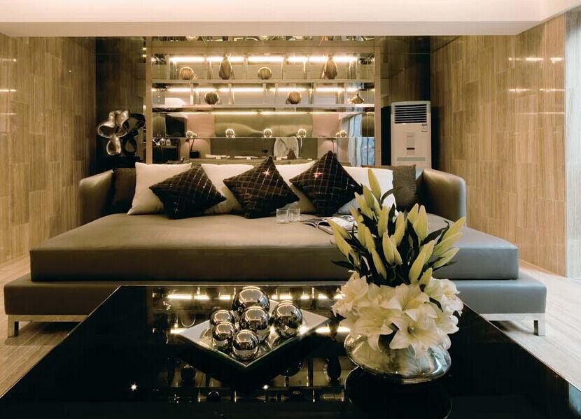布藝在沙發靠墊和床上用品在發揮著重要作用。一般港式家居的沙發多采用灰暗或者素雅的色彩和圖案,所以,沙發靠墊應該盡可能地調節沙發的刻板印象,色彩可以跳躍一些,但不要太過,只需比沙發本身的顏色亮一點兒就可以了。