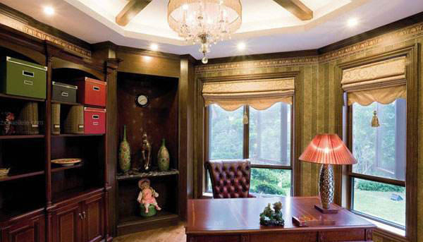 人在嘈雜的環境中工作效率要比安靜的環境中低得多,因此對于書房來講安靜同樣是十分必要的。我們在裝修書房時要選用那些隔音、吸音效果好的裝飾材料。房頂可采用吸音石膏板吊頂,墻壁可采用PVC吸音板或軟包裝飾布等裝飾,地面可采用吸音效果較好的地毯,窗簾要選擇較厚的材料,以阻隔窗外的噪音。