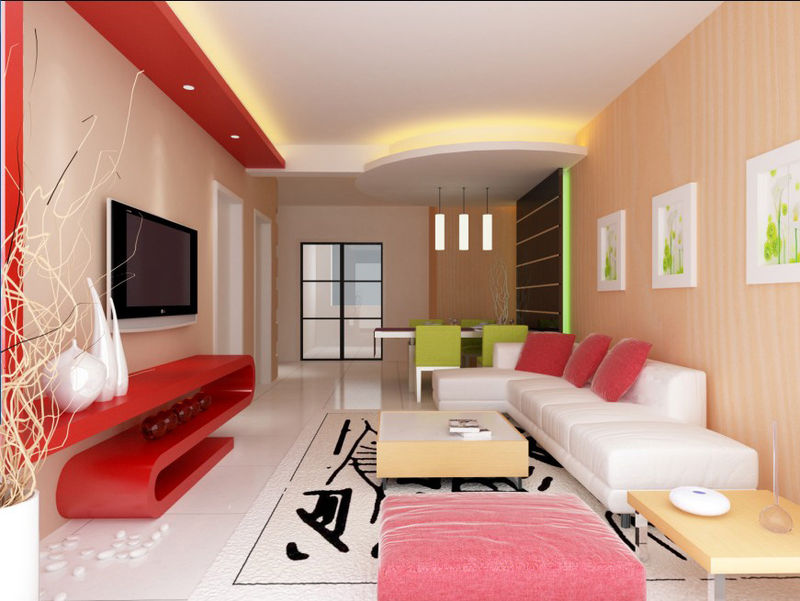 5.紅色。紅色調(diào)可以使整個(gè)客廳活潑起來。在設(shè)計(jì)時(shí)可以利用自然的明暗來制造豐富的層次感。金黃色的天頂,具有反光感的地面,為了避免過分的刺激,在一些地方可采用暗灰與亮灰相間的家具及墻面作為視線的過度。