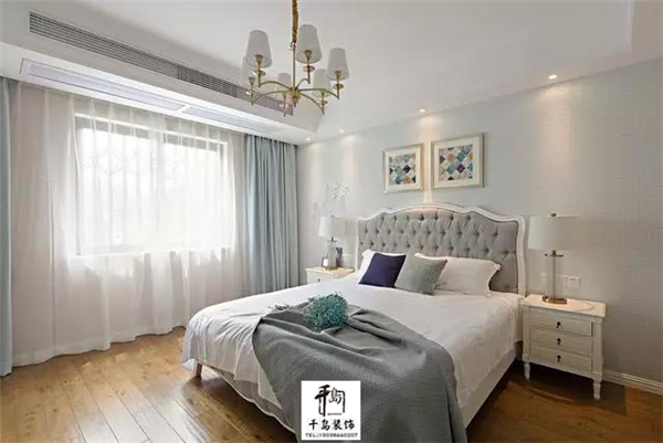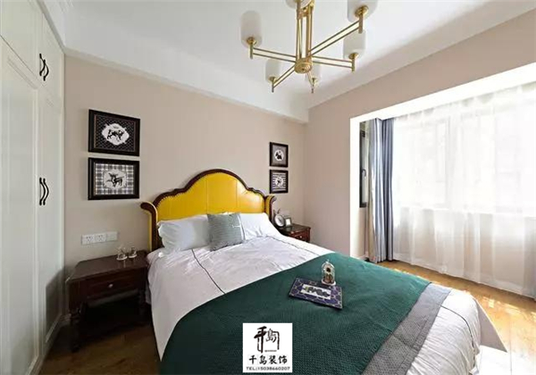 素雅的臥室,黃色的床頭點亮整個睡眠空間的色調(diào),陽光透過薄紗般的窗簾照射在潔白的床上是那么的溫暖舒適。