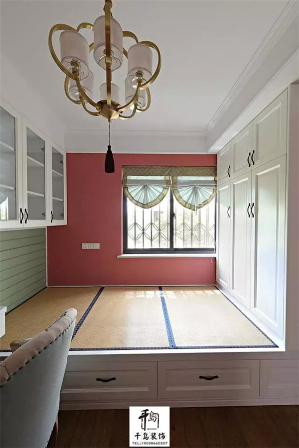 鏈接柜子一體的榻榻米增強的足夠的儲物空間。可以作為書房來使用,同時還可以作為客房使用。