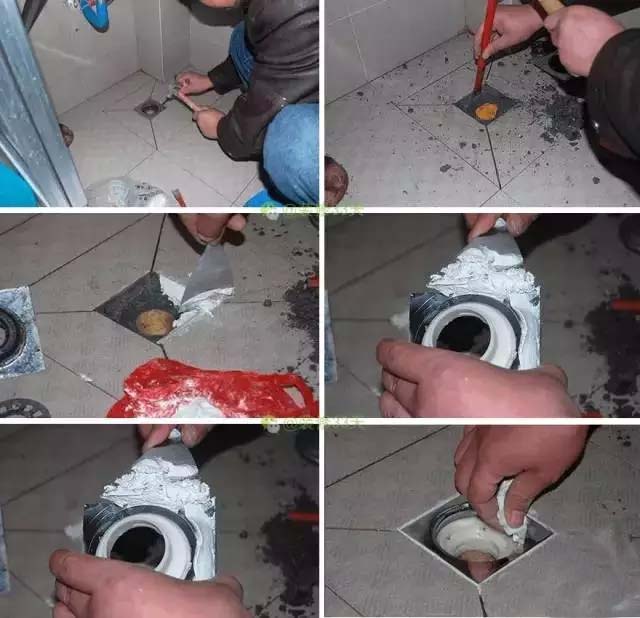 地漏拿出來之后,用塑料袋或者布之類的塞住下水管口,防止雜物下落,然后清理地漏坑四周的水泥。