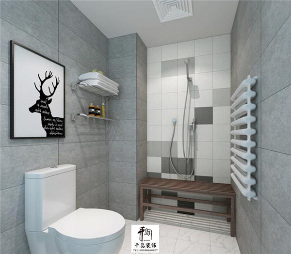 廁所的設計干凈整潔,灰色的墻磚讓整個廁所看起來非常的大氣時尚,而且能夠有效防潮,方面打理,靠墻做了一個壁掛的儲物架,可以為你收納一些洗浴的毛巾之類的,壁掛式的淋浴噴頭,非常有特色的是在淋浴下面做了一個鏤空的長凳,讓你洗澡時可以坐在上面,當然也可以方便你臨時放一些衣物之類的。