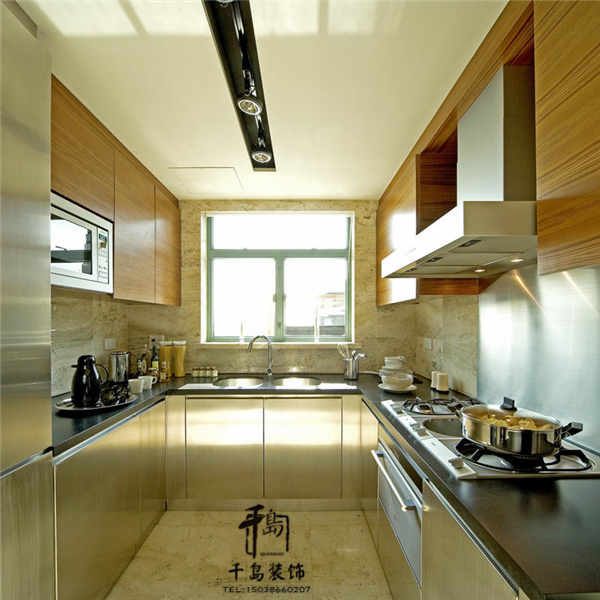 廚房的裝飾設計不應影響廚房的采光、通風、照明等效果。在設計上首先要考慮安全問題。隱蔽工程一定要做好,尤其是廚房的插座位置要妥當,否則會影響到廚柜的尺寸和整體效果。