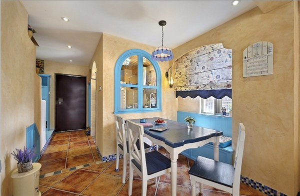 如果餐廳比較長的,可以裝一道屏風,避免入戶門直對餐廳;同時建議可以采用鞋柜隔斷,讓沒玄關的戶型隔出一個玄關空間的同時又能增加收納功能。