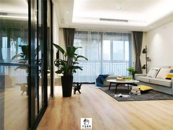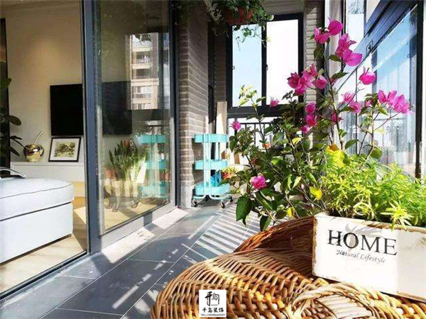 客廳陽臺一分為二,準確的說是功能上一分為二,一半是曬衣區,一半是休閑區(種花種草),滿足了多種功能需求,而且曬衣區剛好客廳看不到,所以整體也更加美觀;
