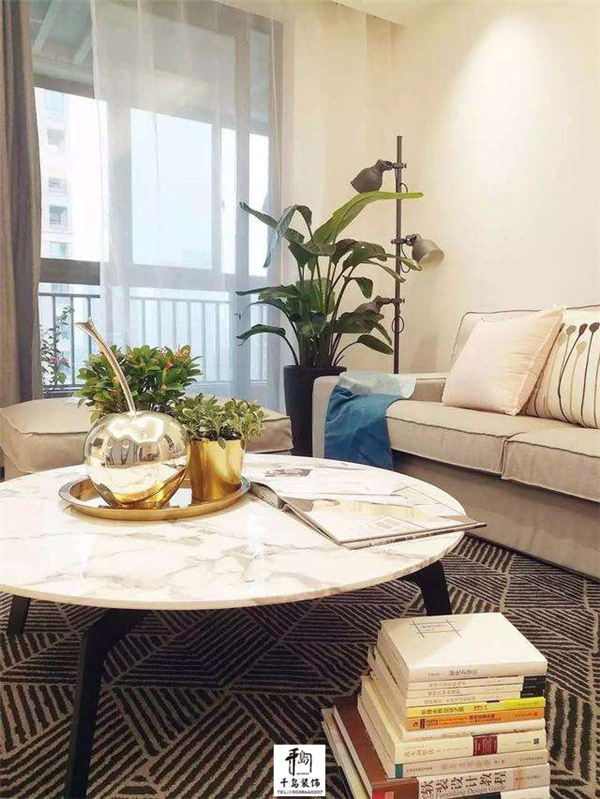 白色大理石茶幾臺面,再擺上古銅色的花盆,體現出一個大氣、時尚的家;