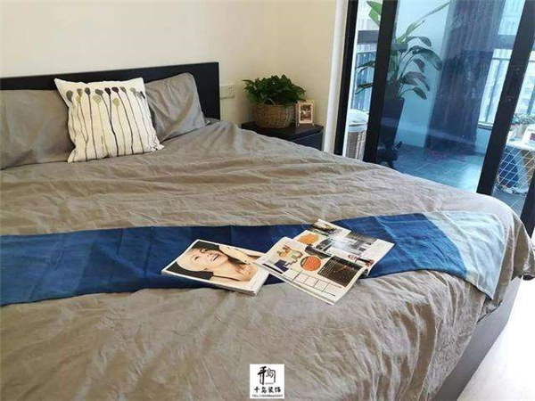 主臥選用灰色的被子,黑色的床,白色的墻面,經典的黑白灰搭配,低調、安靜、沉穩;