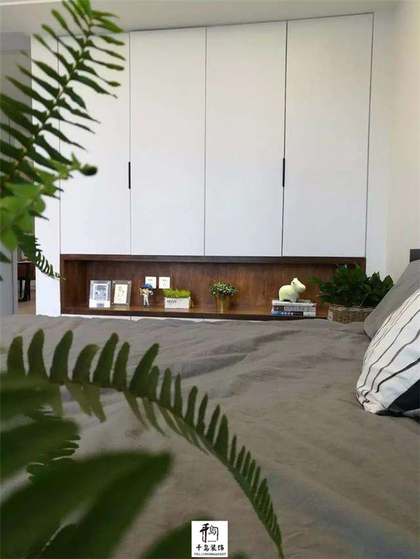 次臥延續了主臥的設計,設計了同款式的衣柜,保證了整屋風格的統一性;