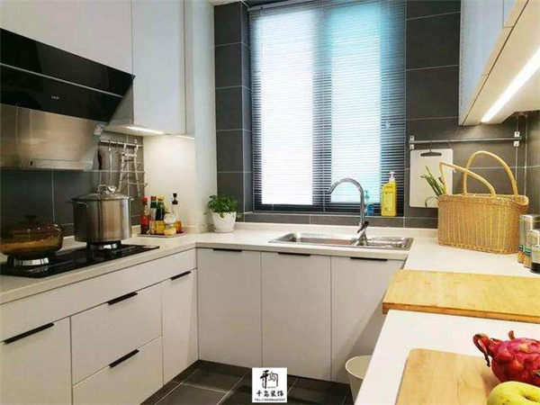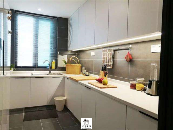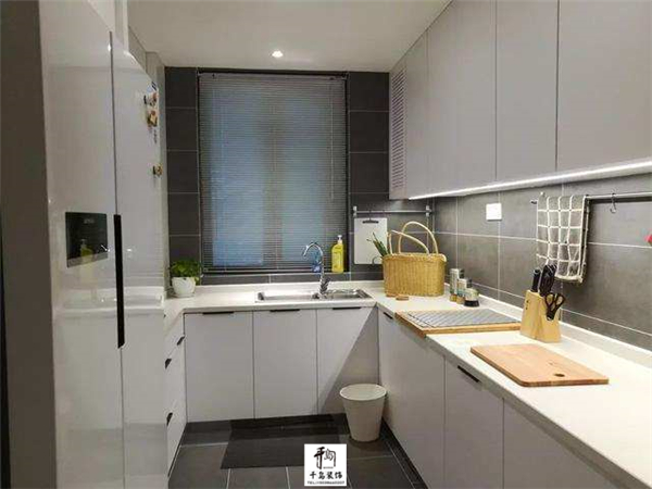 業主想要一個大的廚房,這么看來這算是滿足了業主的要求,大的U字型操作臺面,使用起來不要太爽了;