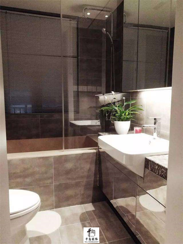主衛,因臺面尺寸的問題,設計了懸掛式的臺盆,很好的解決了尺寸不夠的問題;